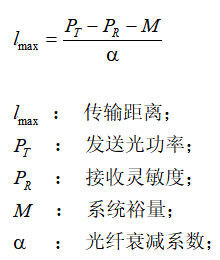 发送光功率以及接收光功率的选择直接影响信号的传输距离,光模块需要选择合适的驱动电流并搭配合适的光纤才能满足现场应用要求,其传输距离的计算公式如下: