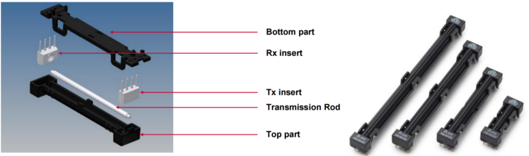 在轨交行业中,部分场景需要加强绝缘,要求驱动器需要更大的电气间隙和爬电距离,导致市面上的隔离器件无法满足安规距离要求。但是人的创造力是无限,为什么不能把光模块和光纤直接合封成一个器件,只要结构允许,调整光纤长度就能得到满足安规要求的器件,所以诞生了一个新器件,俗称光纤光耦,专业英语叫High-Voltage Galvanic Insulation Link。光纤光耦主要由塑料光模块的收发部件搭配塑料光纤构成,仍是采用波长620nm的LED技术,最大电气间隙和爬电距离可达101.2mm,最大工作电压可达17kV。