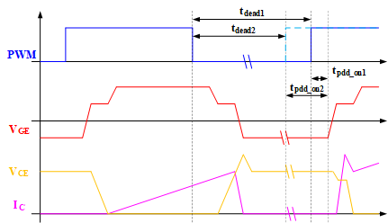 Since the actual applied bus voltage and collector current in customer applications differ significantly from the test conditions in IGBT datasheets, dead time cannot be accurately calculated by referring to IGBT datasheets. A series of double-pulse tests under specific driving conditions are required to obtain accurate delay times and thereby calculate the dead time.