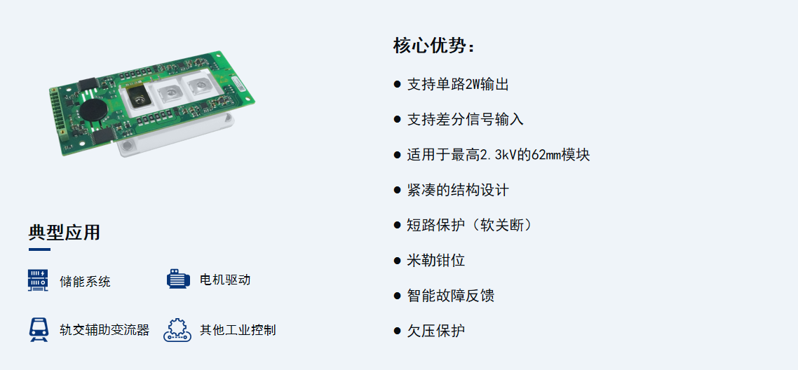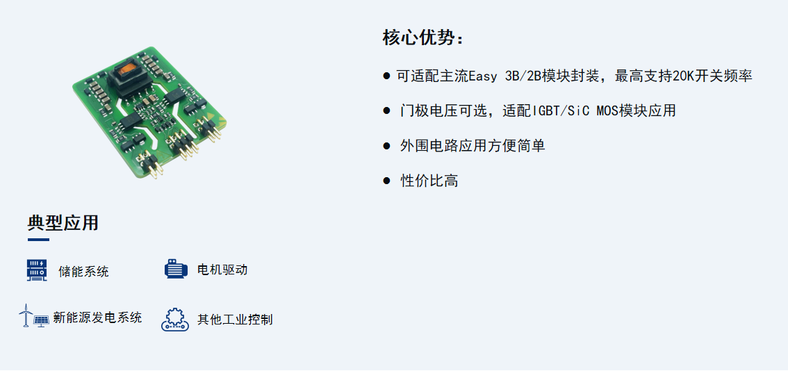 2FHC0110:针对Easy系列模块推出的极小驱动核,同时支持IGBT和SiC模块,使用简单,方便客户设计驱动方案: