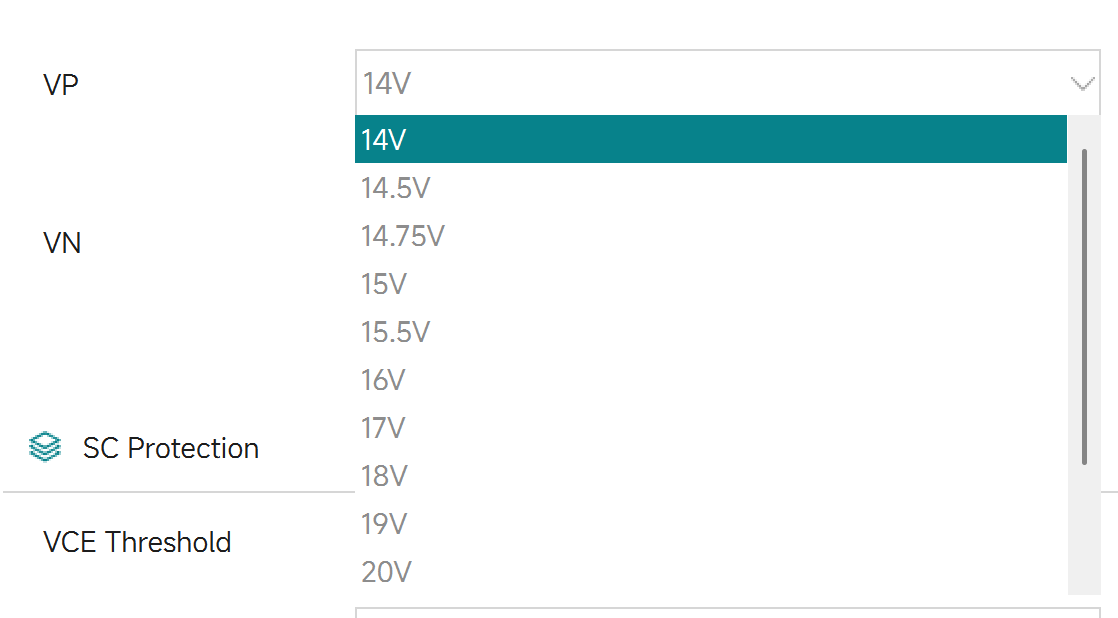 图4 栅极正压调配界面以及可选电压